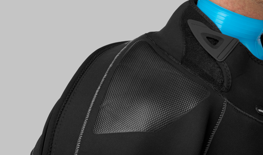 Dieser Anzug ist vollgepackt mit Funktionen, die alles mitbringen. Si Tech Ringsysteme mit austauschbaren Silikonmanschetten an Handgelenken und Hals,